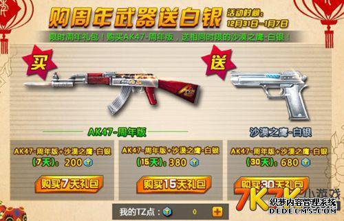此外,周年纪念组合超值大礼包近日发布,三武器组合仅售10元!