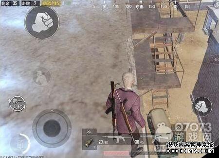 在刺激战场上,大仓跳下楼梯到了建筑物的顶部