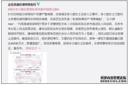 李小璐对三项微博索赔提出了55万元的上诉,评论