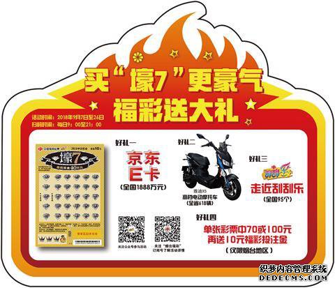 2018年9月3日至26日,在济南市辖区福赛销售点购买``壕7''并在活动期间完成兑换的人将获得独特的彩票``壕7''可以享受胜利级别为10元,另外奖励为5元刮奖。单张彩票““ 7”将以50元的中奖水平赢得另一笔刮刮50元的奖励。单张彩票“壕7”将被另外收取30元的奖励,并奖励70元。