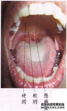 悬挂式小舌头垂下,在正常情况下,它垂下(大豆大小)并垂在喉咙上。