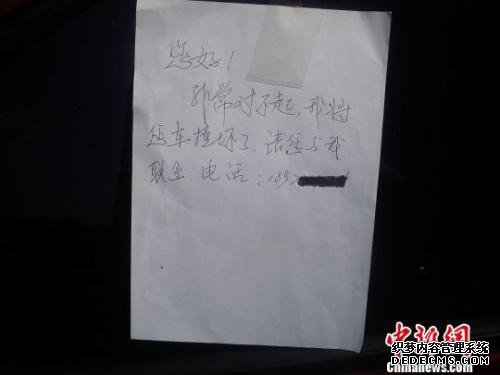 潘先生看着肇事者留下的笔记。