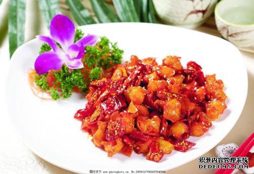 辣子鸡是配有花生,花生是在菜肴非常宝贵的作用,花生的第一种油冷,热,生的锅,并且用小火煎。一旦花生米稍微发黄,或烹调,或者他们正在等待小烧伤,你可以等到花生等。