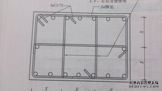 六个冲刺是三个大型封闭式箍筋和两个小型封闭式箍筋的组合。