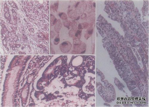 分化不良的肿瘤:癌细胞分化不良,并且近似起源的组织的未成熟形式,例如分化不良的腺癌,腺管和腺泡结构基本消失。
